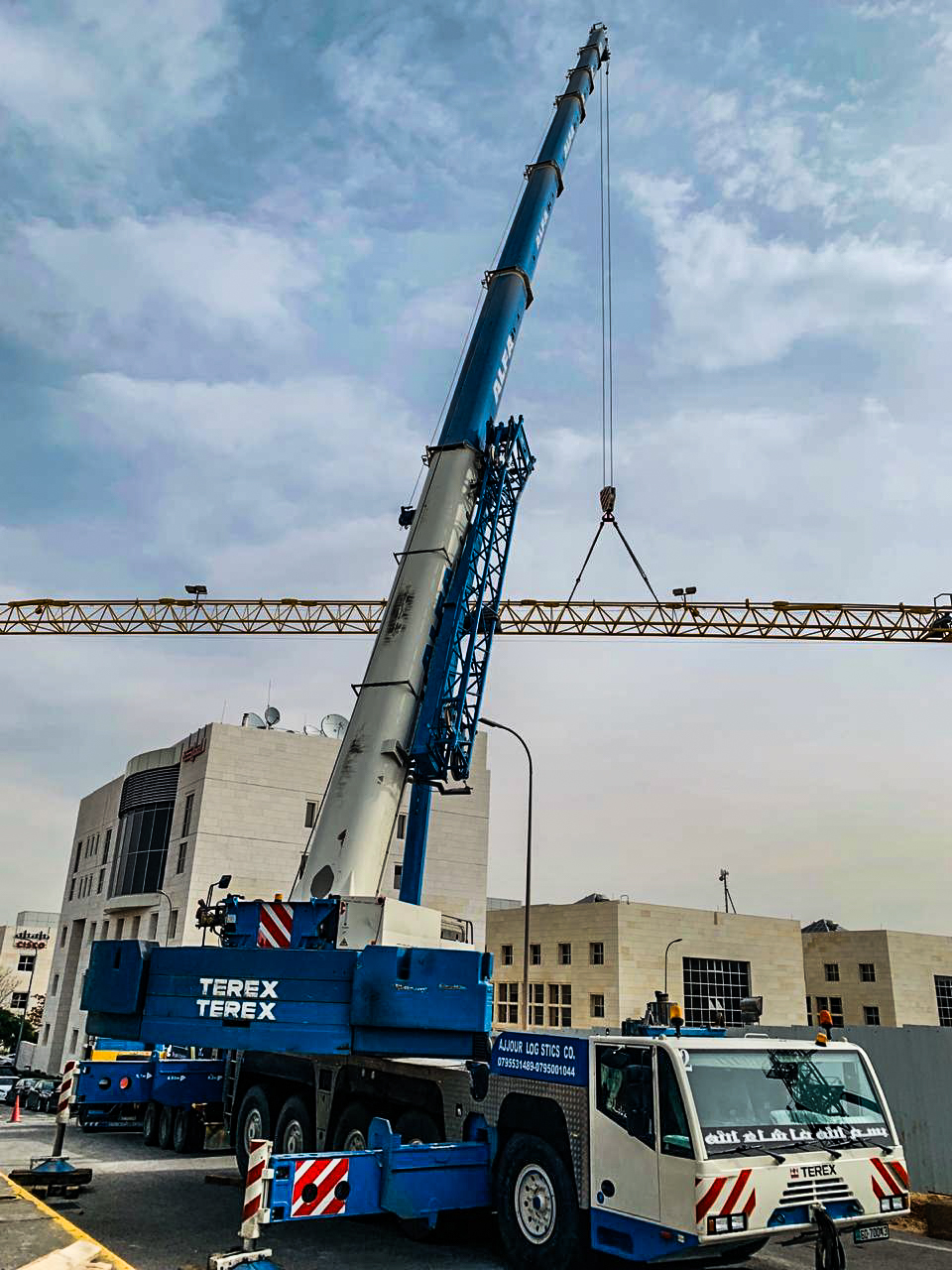 Welcome to our establishment web site Ajjour logistics Cranes Rental and Heavy Transport. We are one of the biggest Establishment in Jordan specialized in cranes rental and Heavy Transport. We own several cranes for rent with capacity Up to 500 tons. We hope that we can reach your satisfaction.